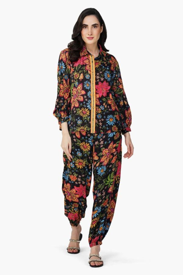 Glow and go with our Black Multi-Floret Pants