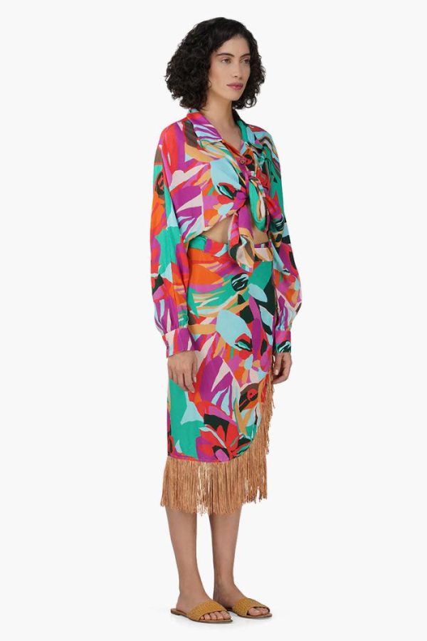 Summer just got a whole lot sweeter with the Candy Rose Printed Fringed Skirt!