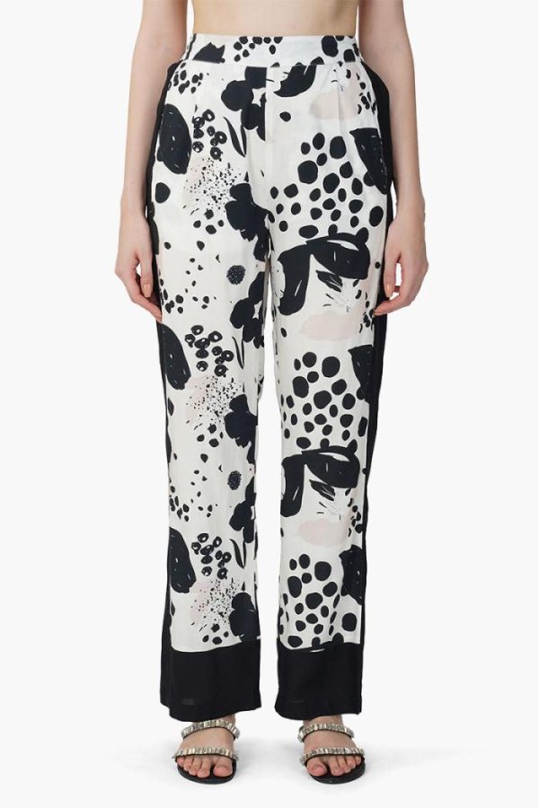 Why settle for plain when you can have petals and panels? These beauties combine a stunning floral print with sleek black panels—because why should pants be boring?”