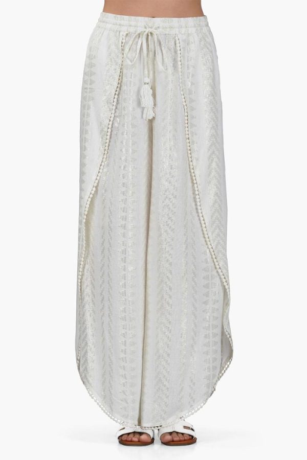Adding a playful and bohemian touch, coin lace is attached at the edges of the pants, creating movement and visual interest with every step. Additionally, the full-length design and elasticated waistband ensure a comfortable fit for all-day wear.
