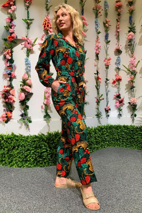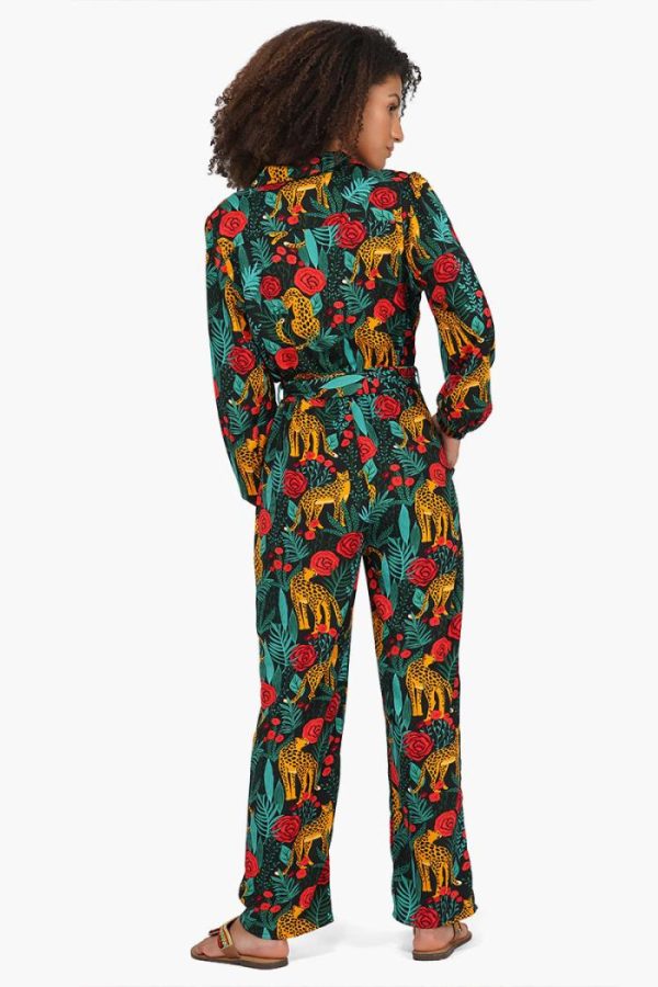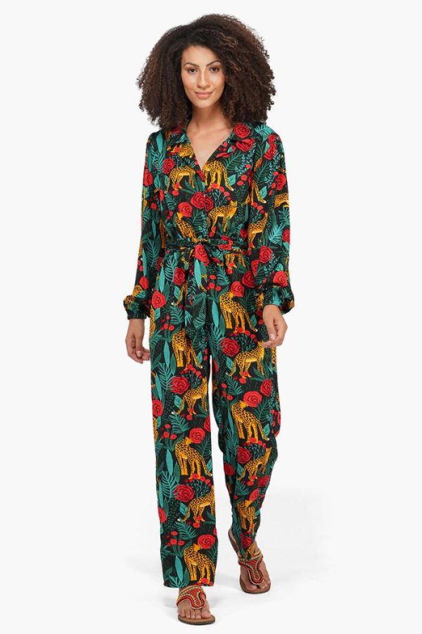 America & Beyond Jumpsuits | Jaguar Dreams Animal Print Full Sleeves Jumpsuit Women