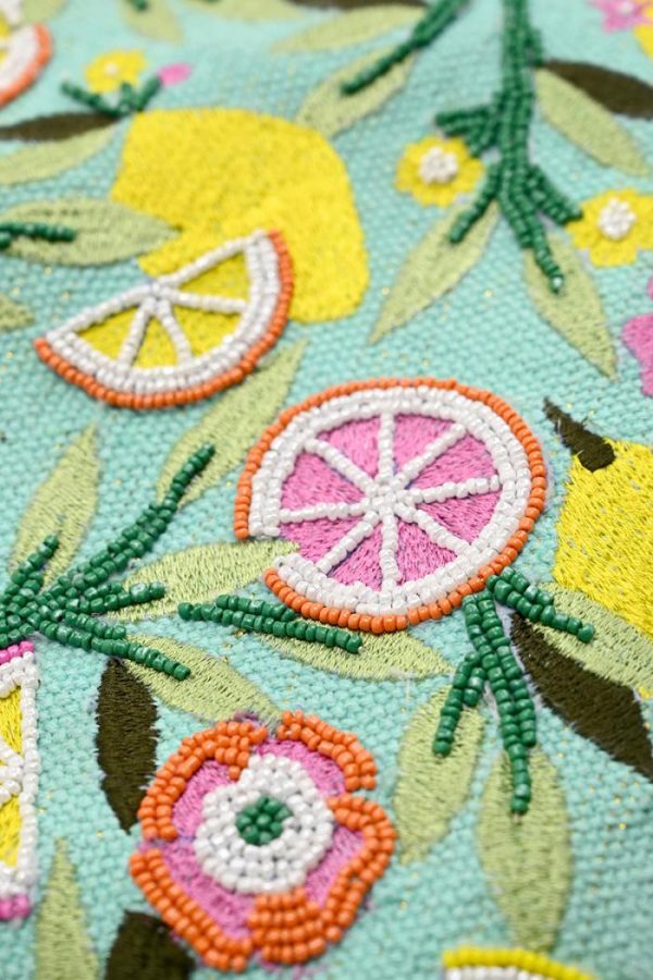 Introducing the Citrus Blueberry Infusion Clutch – a vibrant and chic accessory that exudes sophistication with a playful twist. Crafted with meticulous attention to detail, this clutch features a fully embellished front, reminiscent of a citrus blueberry concoction, adding a burst of color and flavor to your ensemble.