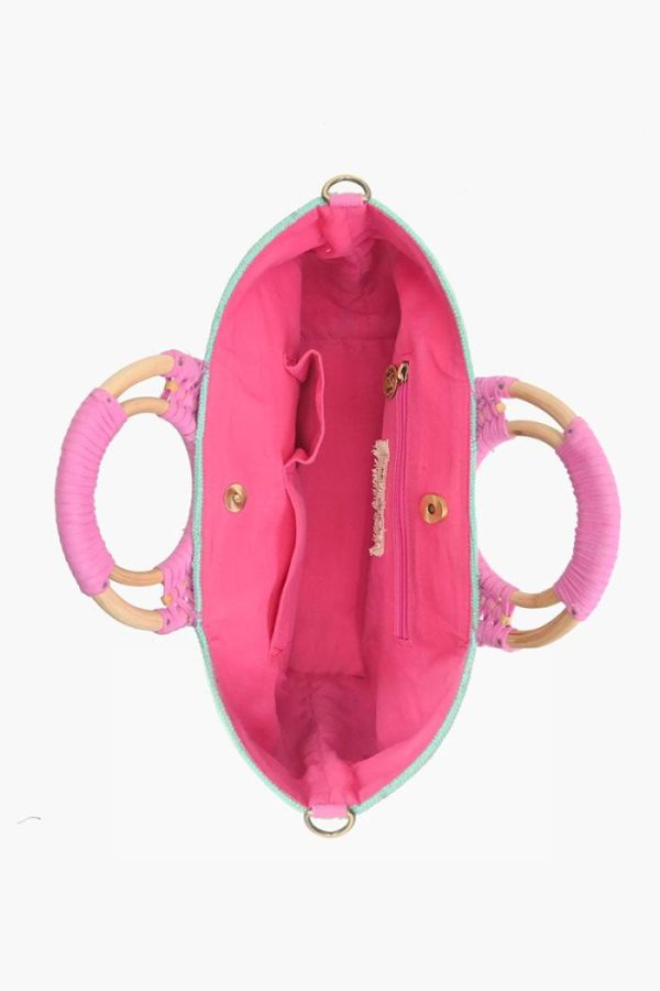 The Bamboo Top Handle with intricate crochet detailing gives a sense of artisanal craftsmanship and natural beauty. It’s a fusion of earthy charm and contemporary flair.
