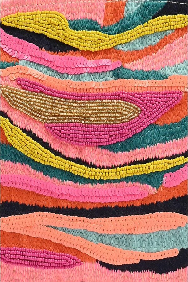 Designed to make a statement, this mini tote features a convenient magnetic button closure, ensuring your essentials are secure yet easily accessible. Inside, you’ll find a spacious, lined interior that’s ready to hold your daily must-haves. Picture yourself strolling through a sunny market or sipping iced coffee at your favorite café, this bag effortlessly elevating your look. The Daphne Embellished Mini Bag is your go-to for adding a splash of quirky elegance to any summer day.