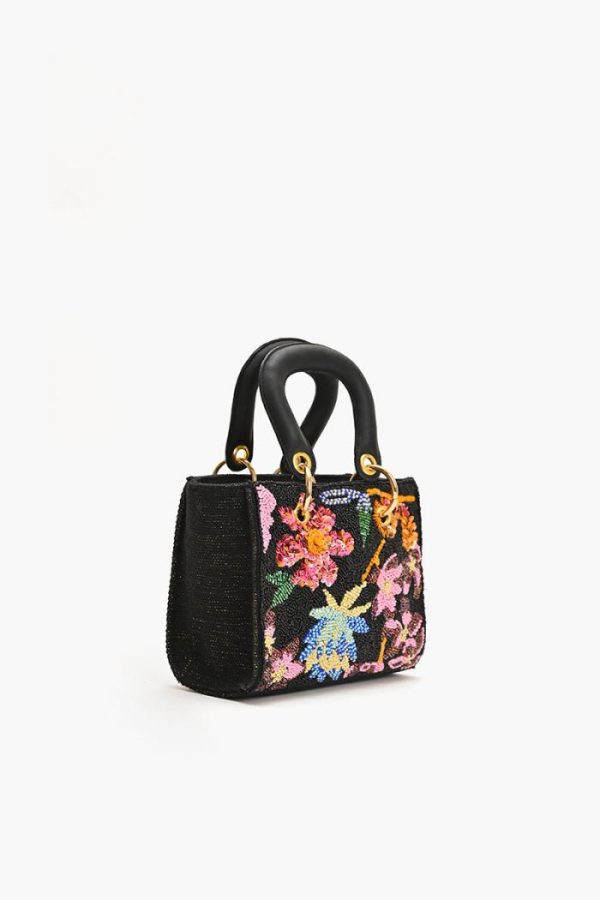 Unveiling our Midnight Floral Embellished Mini Evening Bag, a captivating blend of elegance and functionality. In this chic black handbag, a breathtaking floral design intricately embroidered, lending an aura of sophistication to any attire. The opulent gold hardware serves as a stunning accent, harmonizing flawlessly with the overall aesthetic. Equipped with both a detachable chain-link shoulder strap and two sleek flat top handles, this handbag ensures versatility and ease of wear. Meticulously crafted from hand-woven jacquard, it epitomizes superior craftsmanship and meticulous attention to detail. Within its fully lined interior lies a convenient zip pocket, ensuring your essentials stay organized and within reach. Sized at 7.5 x 6.5 x 3.5 inches, this accessory is the epitome of understated luxury, perfect for a night out or a special occasion.