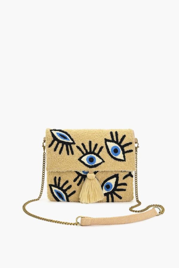 - Foldover Flap Clutch with Evil Eye Tufting on the Front