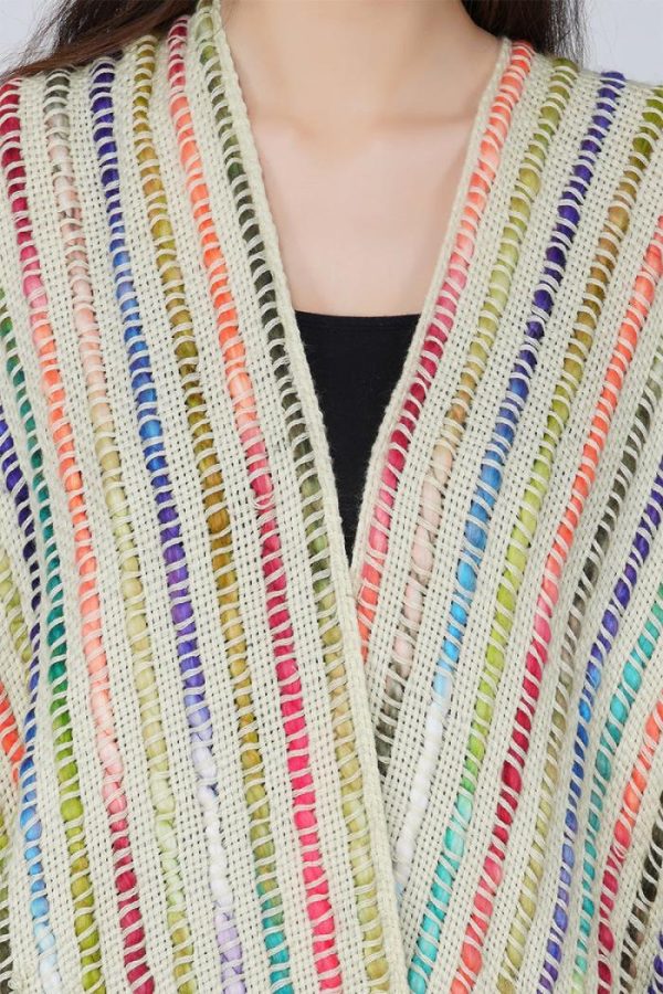 - Handwoven Ruana, Bohemian Poncho, Ruana, Women’s Cape, Boho Wrap , Lovely and warm multi-color striped knit wrap blanket ruana poncho sweater.