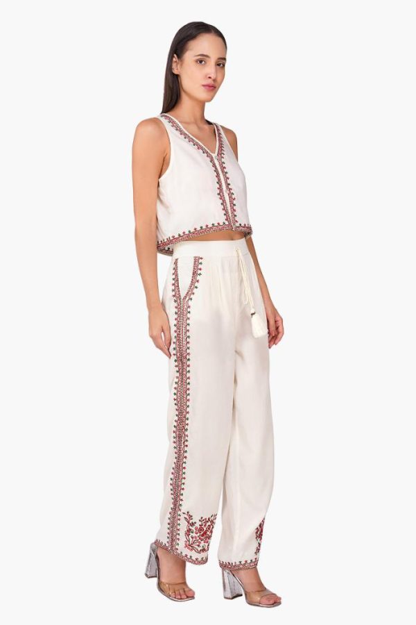 Made from soft viscose modal, it features delicate machine embroidery along the neckline, center front, and hem for that flirty little flourish.
