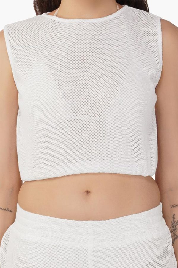 The cotton net crochet material adds a light and breezy texture to the White Indy Mesh Crop Top, making it a perfect choice for beach outings, poolside relaxation, or as a stylish layer for your summer wardrobe.