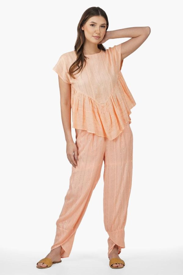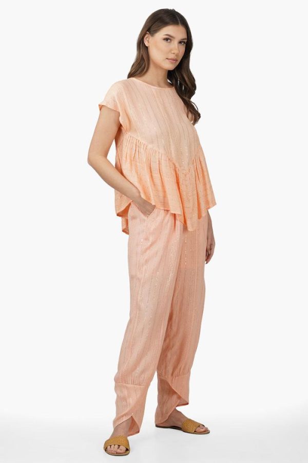 - Viscose yarn dyed lurex flared gathered top